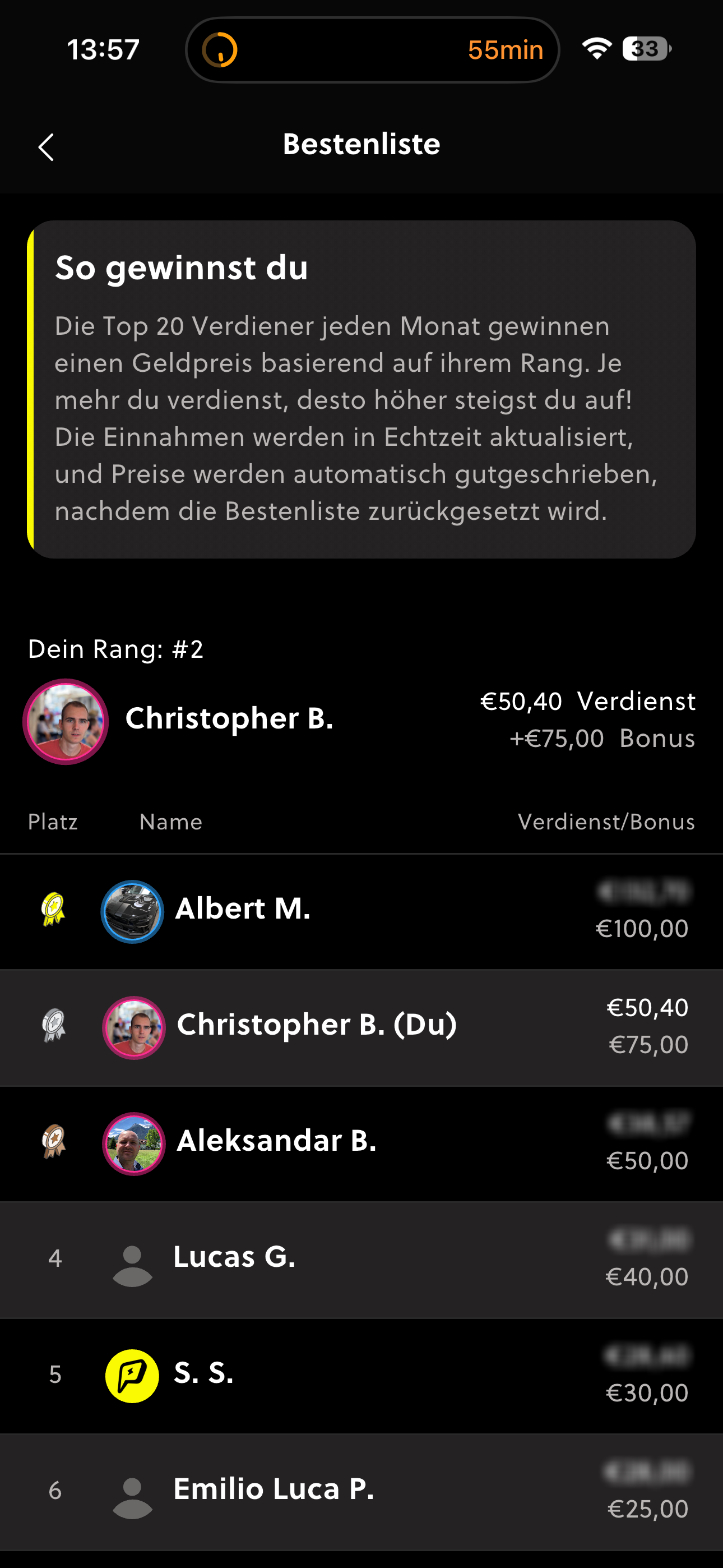 Hier ist die Bestenliste und der Affiliate-Wettbewerb. Monatlich gewinnen die Top 20 extra Geldpreise. Ich bin gerade Platz 2 und würde zu meinen 51€ noch 75€ Bonus bekommen.